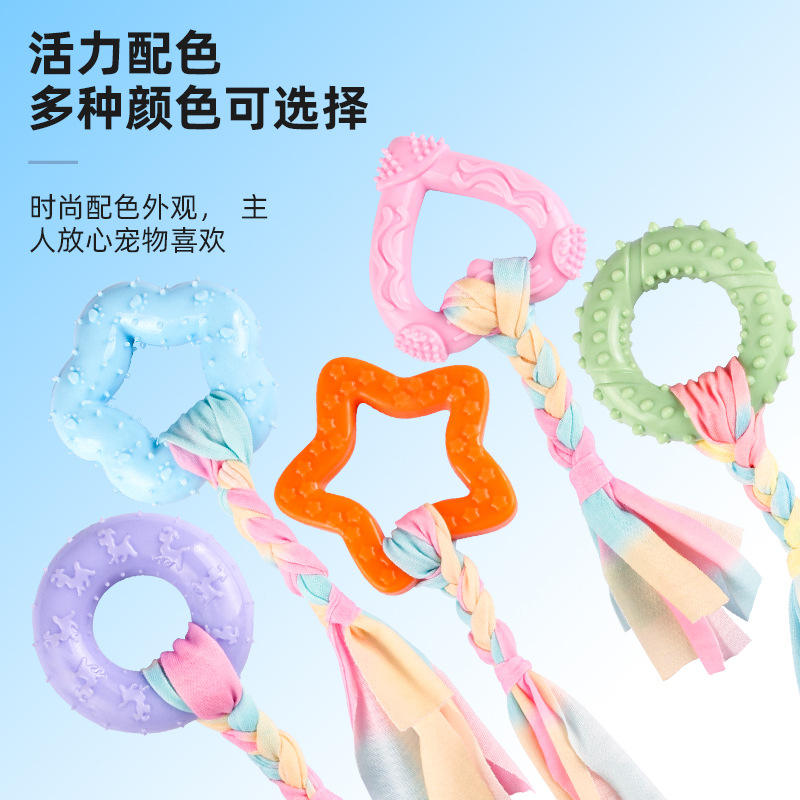 ของเล่นสัตว์เลี้ยง, ของเล่นปม, เชือกฝ้าย, การบดฟัน, การทำความสะอาดฟัน, ทนต่อการกัด, ของเล่นสุนัขแบบถักด้วย TPR