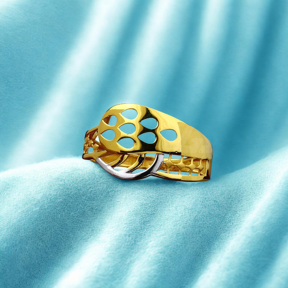 แหวนทองสองสีลายกลีบดอกไม้ | การออกแบบแบบไวด์แบนด์สำหรับผู้หญิง | เครื่องประดับทองคำแท้ 2,000 กรัม ดีไซน์ทันสมัย