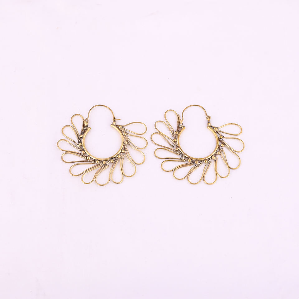 ต่างหูห่วงทรงกลีบดอกไม้ทองเหลืองชุบทองทันสมัยจากไจปุร์ อินเดีย