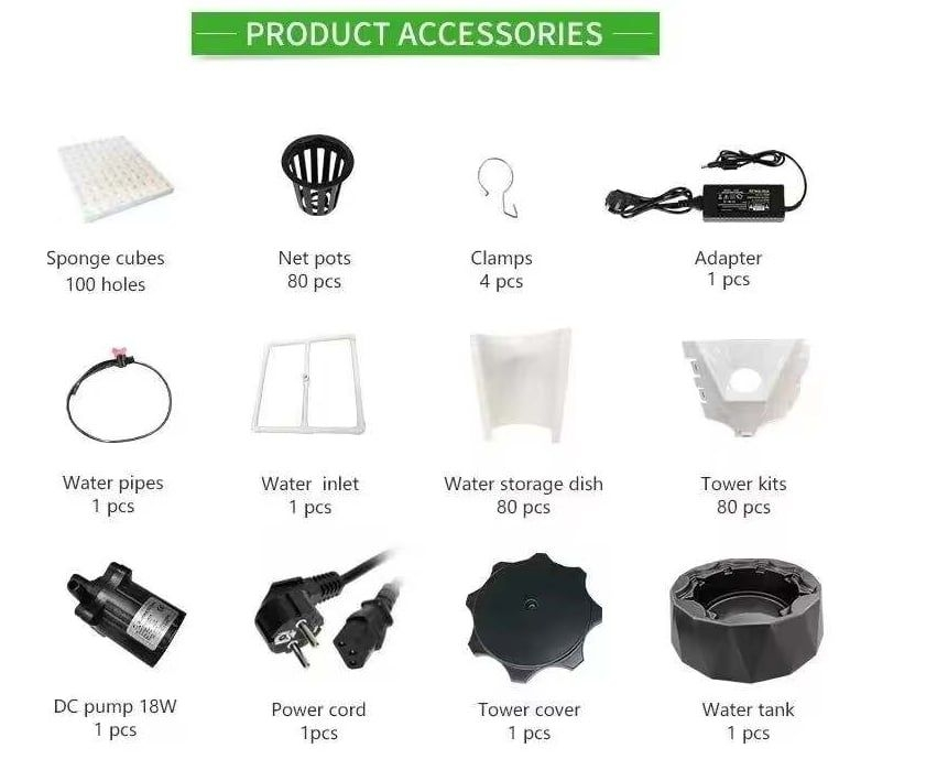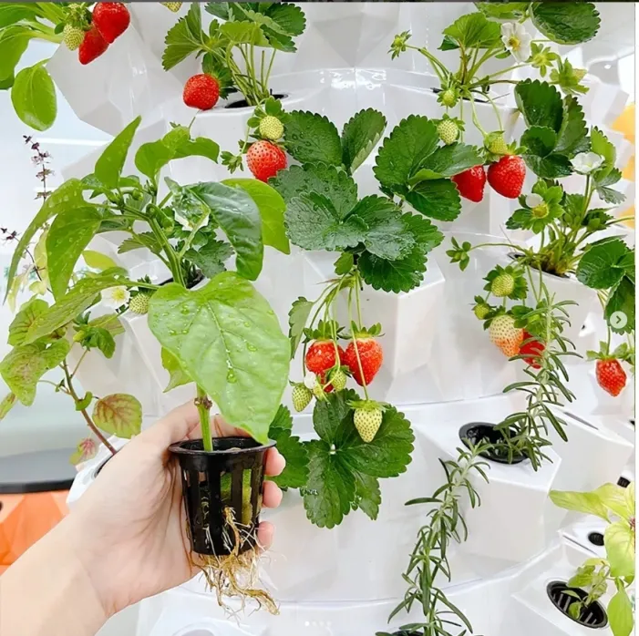 หอคอยทรงสูงไฮโดรโปนิกส์แนวตั้งพร้อมไฟ LED 60รูสำหรับใช้ในครัวเรือน