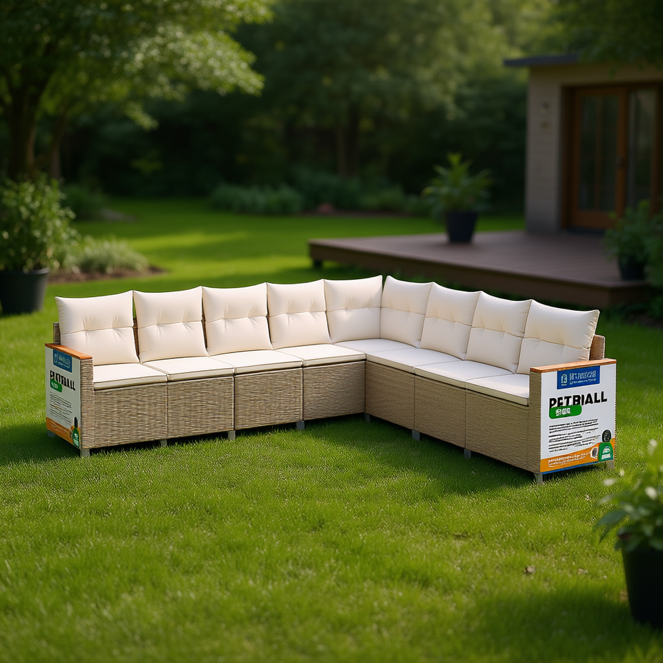 ชุดโซฟาหวายสีเบจ Petiall สำหรับสวน พร้อมเบาะกันน้ำ ดีไซน์ร่วมสมัย