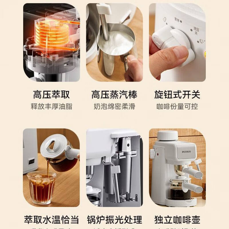 เครื่องชงกาแฟเปตรัส เอสเพรสโซ่ 5 บาร์ กึ่งอัตโนมัติ พร้อมเครื่องทำฟองนม สำหรับใช้ในบ้านและสำนักงาน