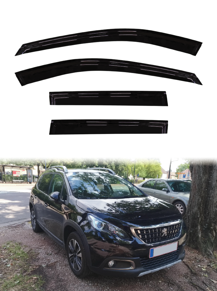 ชุดบังแดดหน้าต่างรถยนต์ Peugeot 2008 ปี 2013-2019 รุ่น Slimline สีดำใส อะคริลิค GCS 4 ชิ้น พร้อมเทป 3M สำหรับป้องกันและตกแต่ง