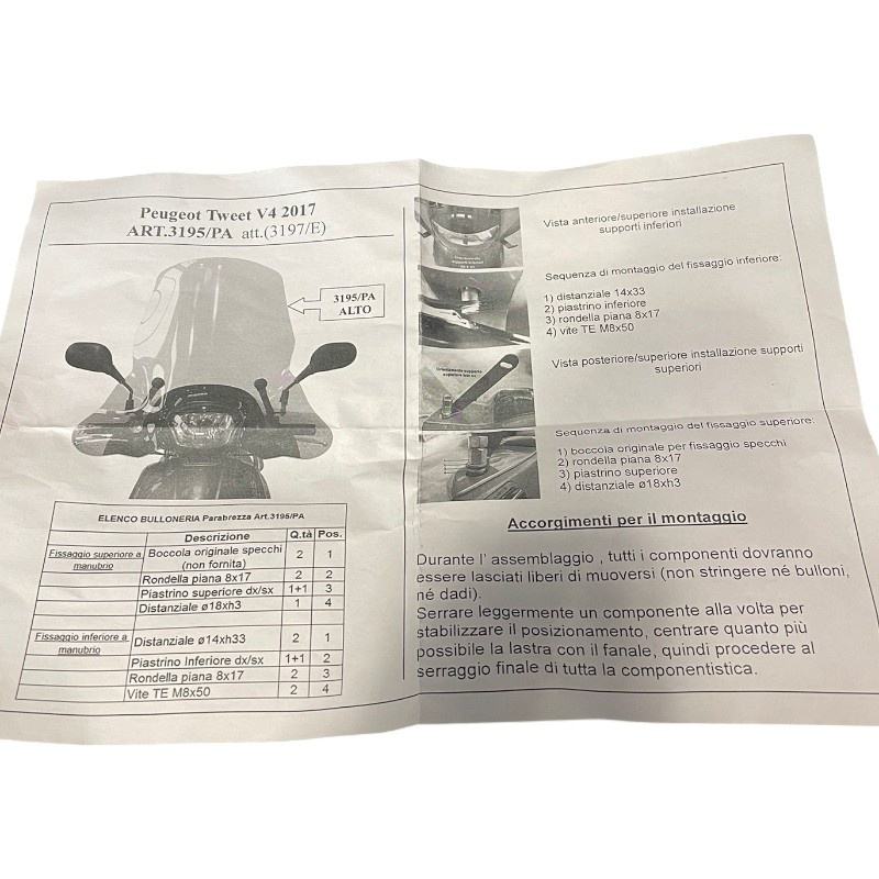 ชุดติดตั้งกระจกบังลม Peugeot Tweet V4 2017 ART สภาพใหม่ รุ่น 3195/PA และ 3197/E