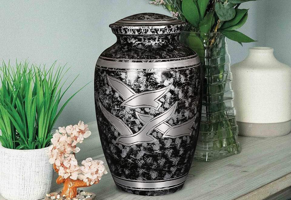 โกศขนาดใหญ่ของ Pewter พร้อมนกสําหรับเถ้ามนุษย์ - โกศที่สวยงามและอ่อนน้อมสําหรับซากของคนที่คุณรัก โกศน่ารักนี่ -