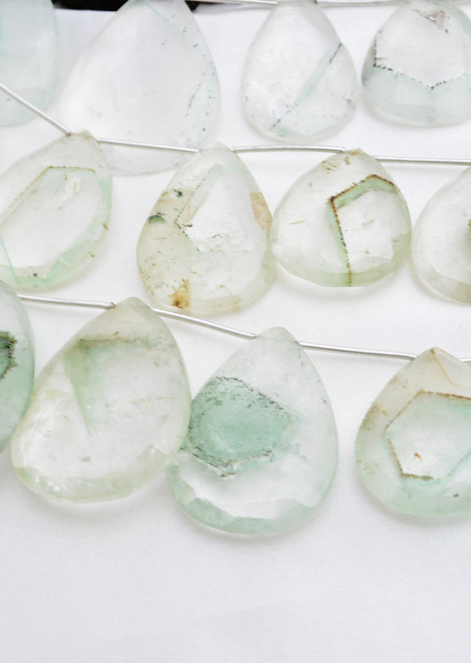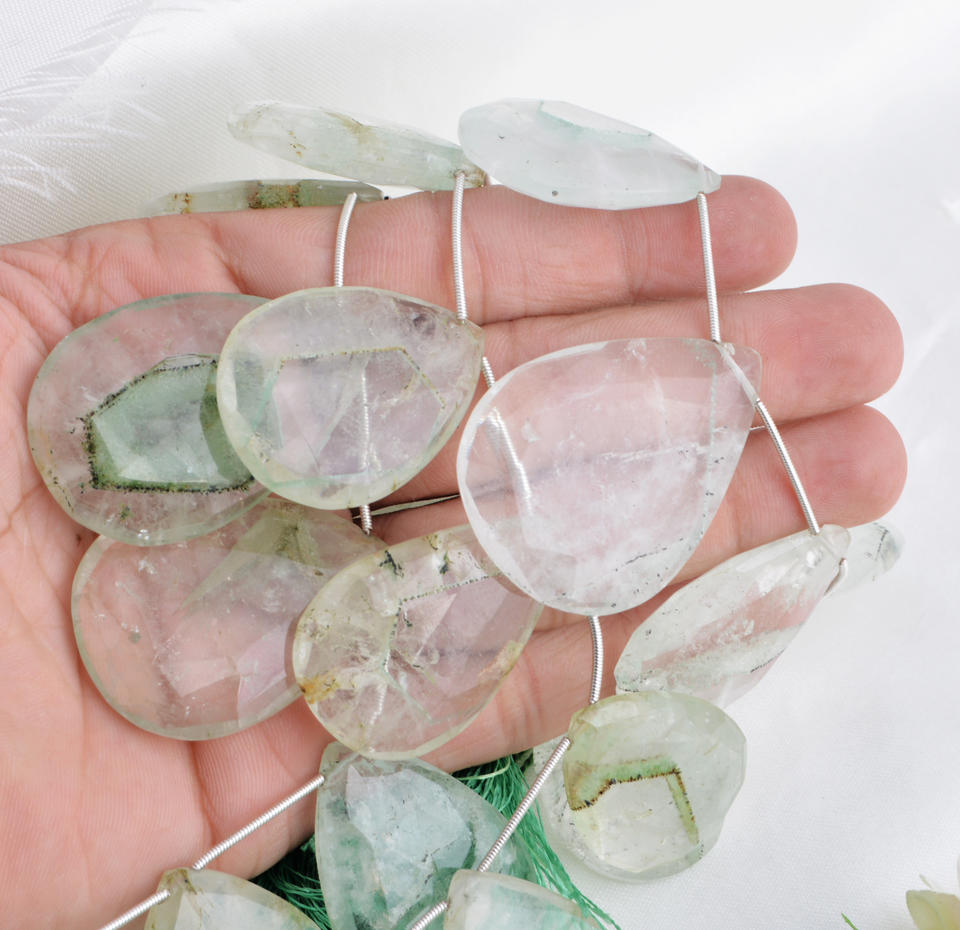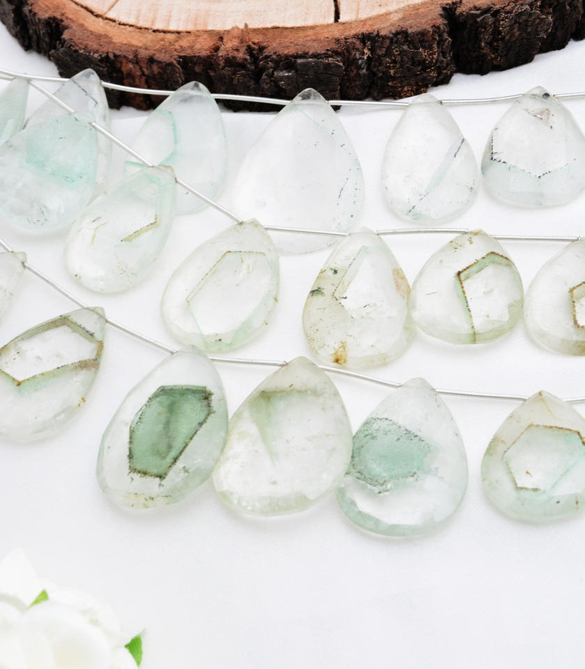 ลูกปัดควอตซ์แฟนทอมทรงหยดน้ำเจียระไน ขนาด 8 นิ้ว ลูกปัดควอตซ์แฟนทอมทรงหยดน้ำเจียระไนจากธรรมชาติ สำหรับทำเครื่องประดับชั้นดี