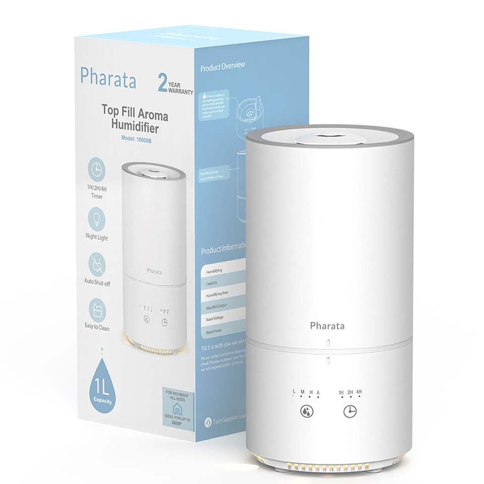 เครื่องเพิ่มความชื้นในอากาศพาราต้า ท็อปฟิล อะโรมา 1 ลิตร พร้อมตัวตั้งเวลาและไฟกลางคืนสำหรับใช้ในบ้าน