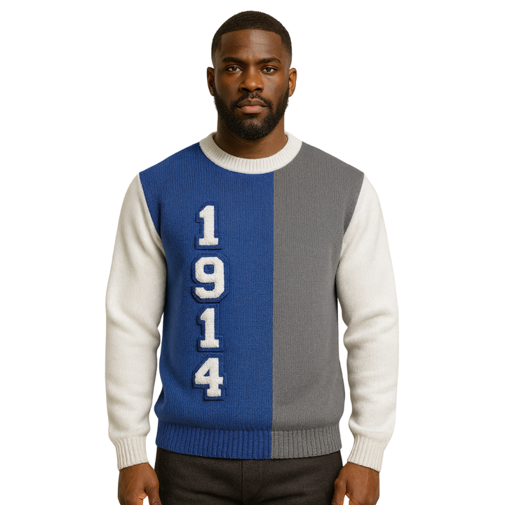 Phi Beta Sigma เสื้อสเวตเตอร์ถัก3โทนสีฟ้า1914เครื่องแต่งกายพี่น้องกรีกปักผ้ากำมะหยี่แบบพรีเมี่ยม