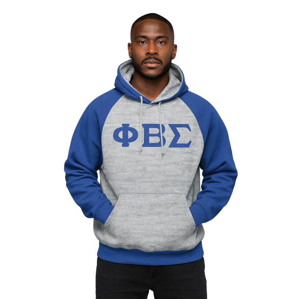 เสื้อฮู้ดสีเทา แขนสีน้ำเงิน แบบสวมหัว ของชมรมฟีเบต้าซิกมา เสื้อผ้าสำหรับชมรมกรีก ออกแบบเองได้ ลาย Divine Nine HBCU Life