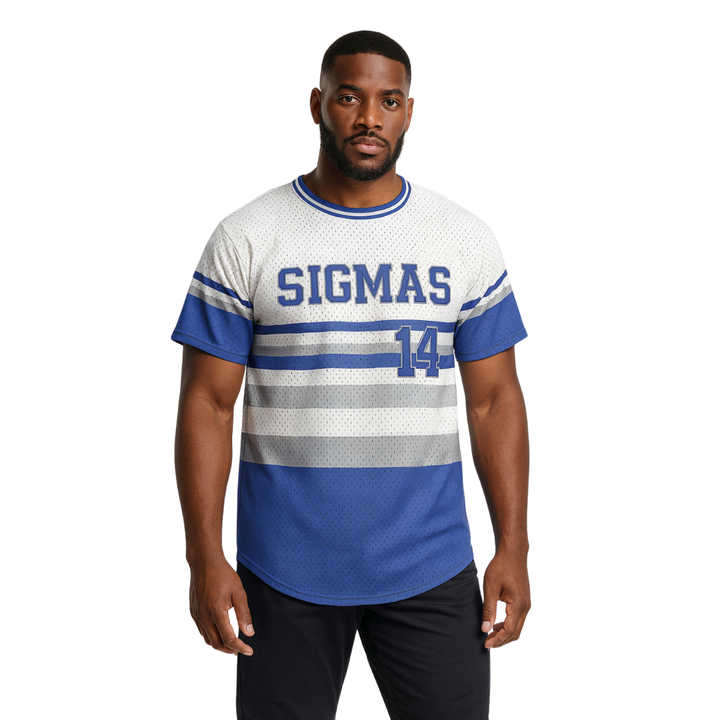 เสื้อเบสบอลลายทางสีขาว Phi Beta Sigma HBCU Divine Nine Greek Fraternity Apparel เสื้อยืดตาข่ายโพลีเอสเตอร์ 100%