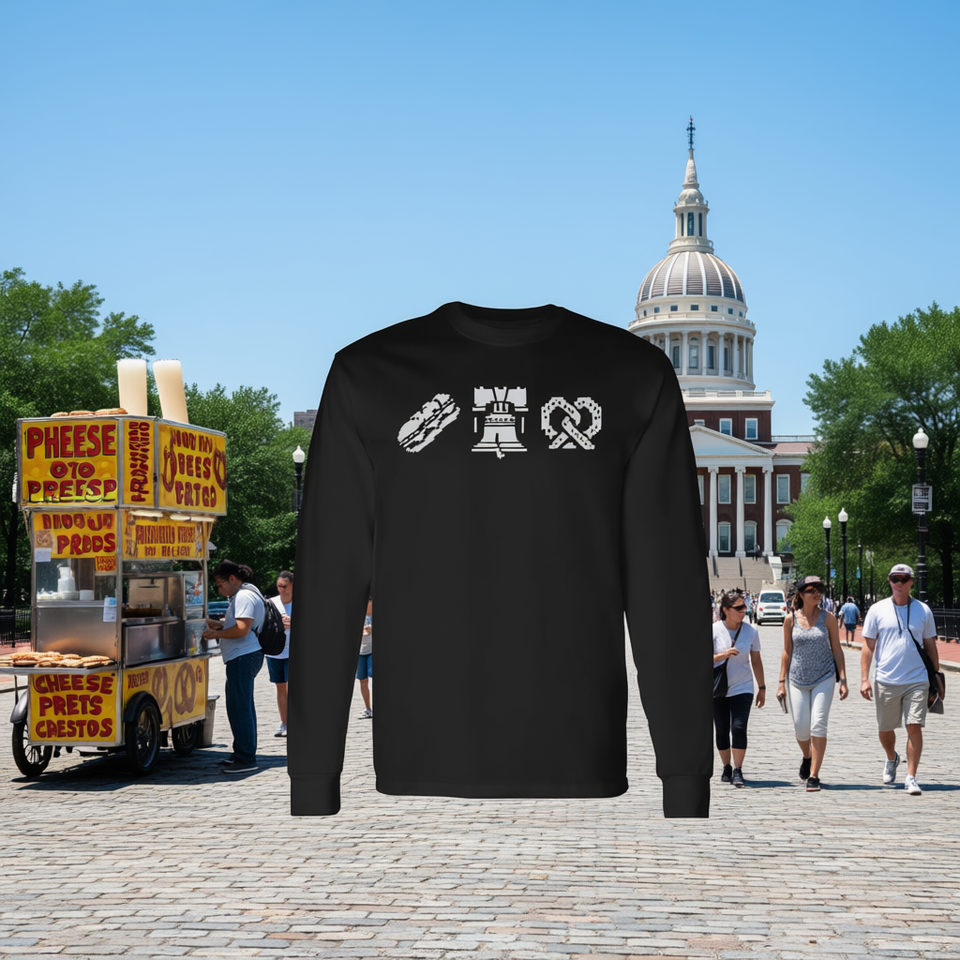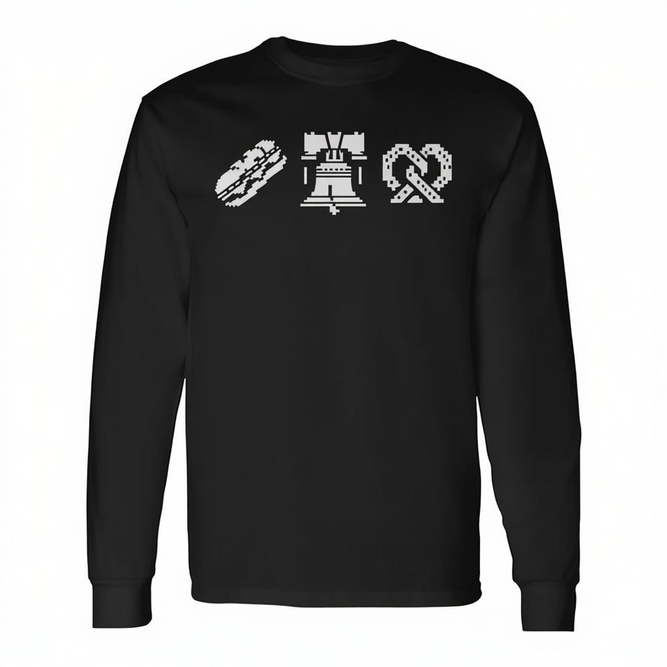 เสื้อยืดแขนยาวฟิลาเดลเฟีย พีเอ สำหรับทุกเพศ พิมพ์ลายชีสสเต็ก ลิเบอร์ตี้เบลล์ ซอฟท์เพรทเซล