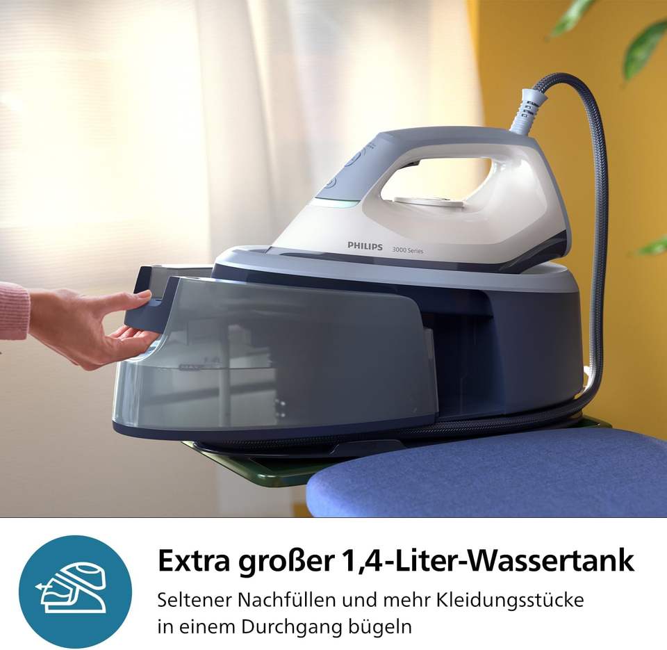 เตารีดไอน้ำ Philips ซีรีส์3000 2400วัตต์ไอน้ำต่อเนื่อง120 gmin เพิ่มพลังไอน้ำ350ก. รวดเร็วและทรงพลัง (PSG300020)