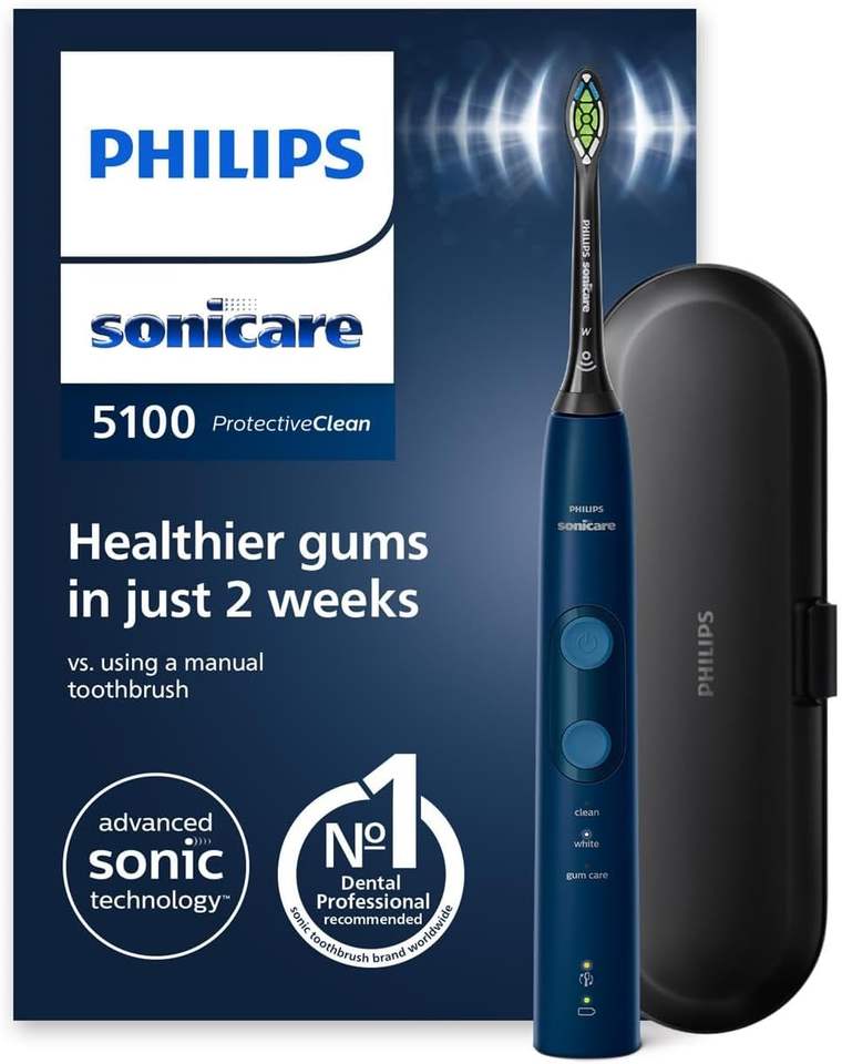 Philips แปรงสีฟันไฟฟ้า5100ป้องกันการรบกวนด้วยคลื่นเสียงโซนิกพร้อมโปรแกรมทำความสะอาด2โปรแกรมการควบคุมความดันตัวจับเวลา