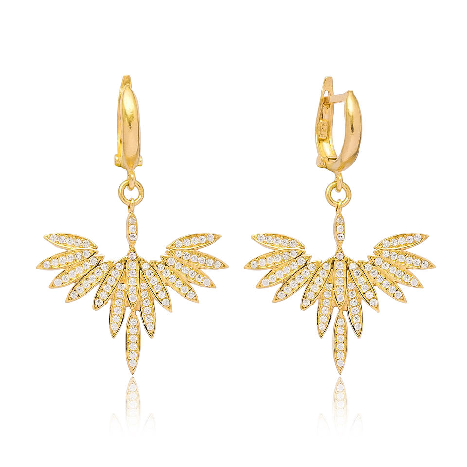 ต่างหูห้อยดีไซน์ฟีนิกซ์ ประดับเพชรซิคอนใส งานแฮนด์เมดจากตุรกี ขายส่ง เครื่องประดับเงินแท้ 925