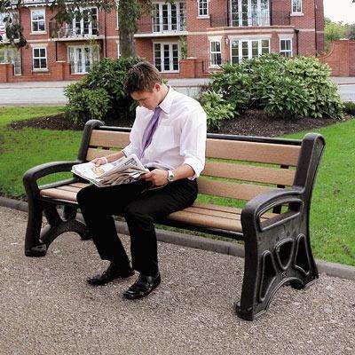 เฟอร์นิเจอร์ข้างถนนกลางแจ้งสไตล์โมเดิร์นม้านั่งพลาสติกและไม้เนื้อแข็งพร้อมดีไซน์โลหะสำหรับสวนในยิมภายนอกอาคาร