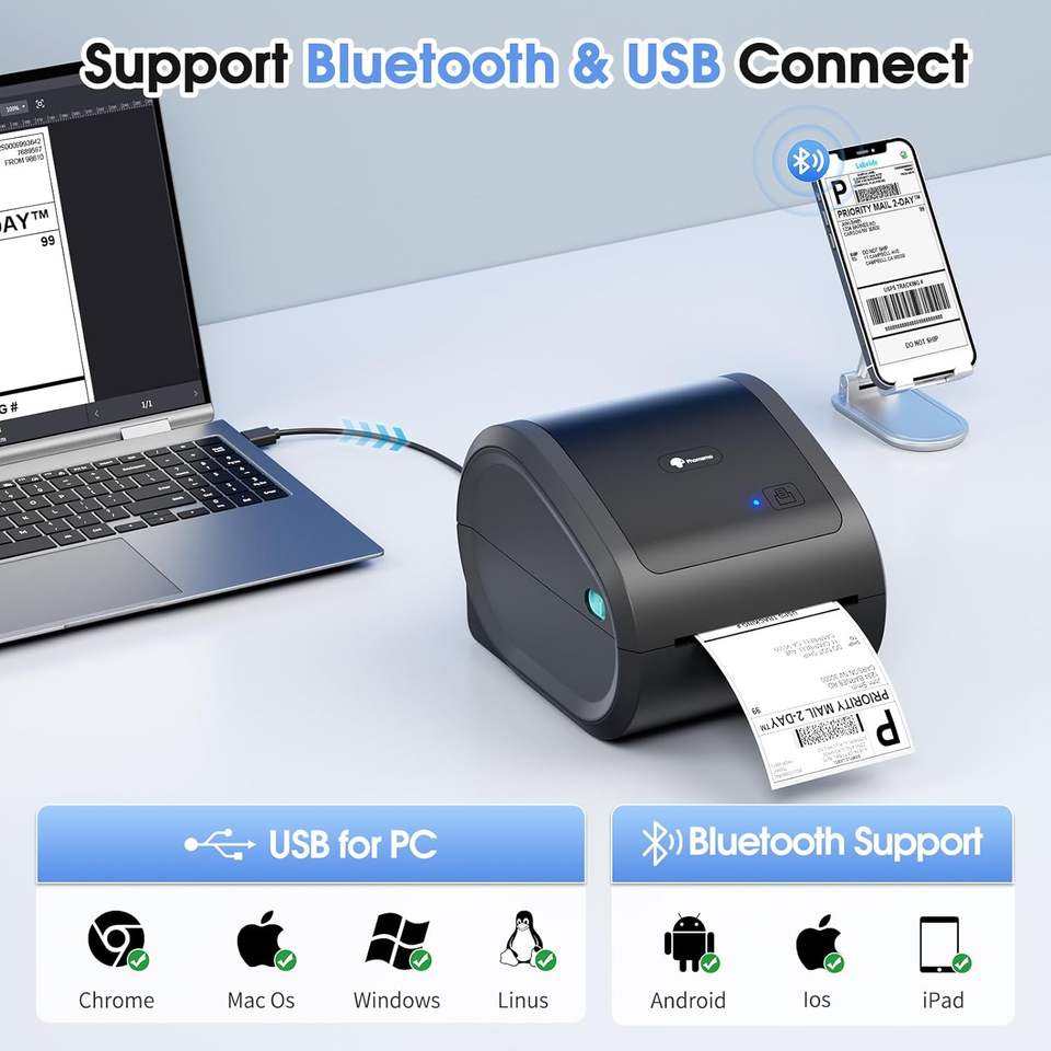 Phomemo เครื่องพิมพ์ฉลากจัดส่งขนาด108มม. สติกเกอร์บาร์โค้ดความร้อนเครื่องพิมพ์4x6สำหรับแท็กการพิมพ์ตั๋ว