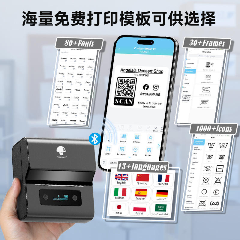 เครื่องพิมพ์ฉลากความร้อน Phomemo M221 ขนาด 118 มม. เครื่องพิมพ์บาร์โค้ดอัจฉริยะแบบพกพา ไม่ต้องใช้หมึก สำหรับพิมพ์ฉลาก