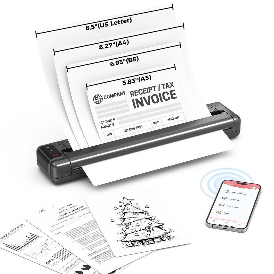 เครื่องพิมพ์ความร้อน Phomemo Q302 ขนาด A4 แบบพกพาไร้สาย สำหรับพิมพ์เอกสาร ใช้ได้ทั้งที่บ้านและที่ทำงาน