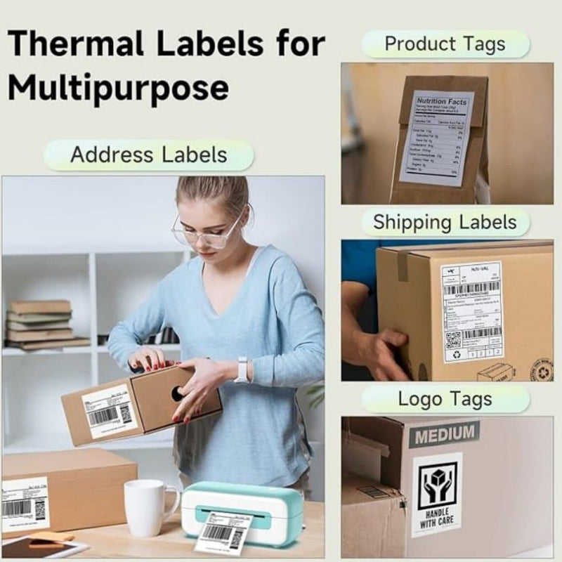 Phomemo สติกเกอร์ติดฉลากพลาสติกขนาด4 "x 6'' กันน้ำฉลาก250กำหนดขนาดได้เอง/ม้วนสำหรับร้านขายของชำและโปรโมชั่น