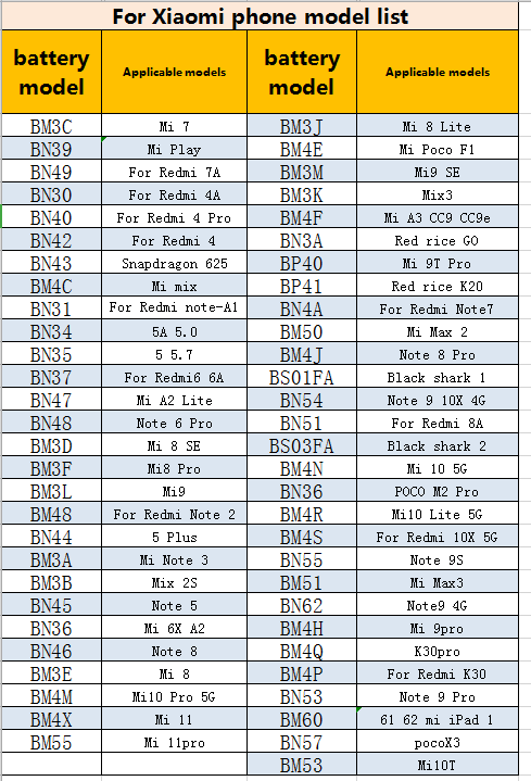 แบบจำลอง:สำหรับแบตเตอรี่ Xiaomi Redmi