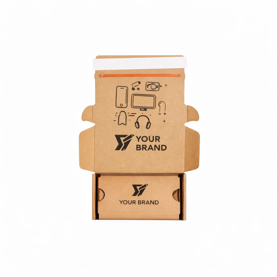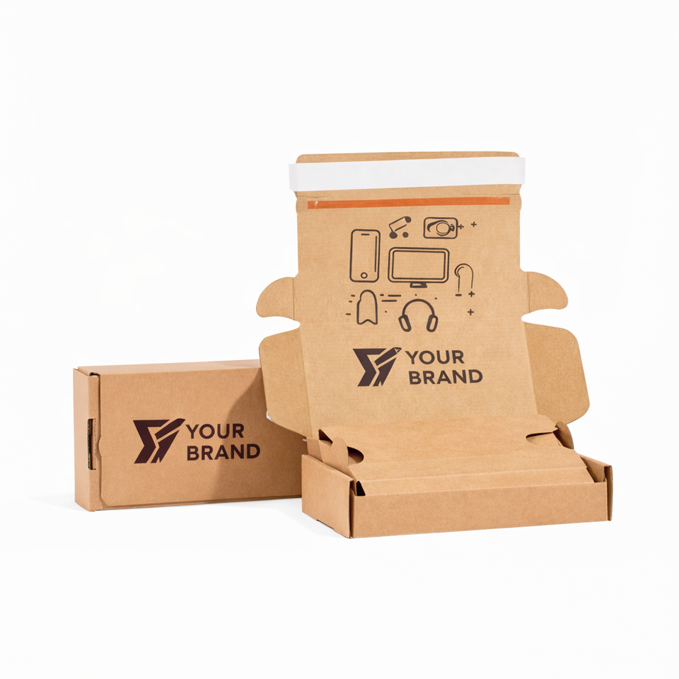 กล่องไปรษณีย์แบบล็อคเองได้สำหรับบรรจุภัณฑ์อีคอมเมิร์ซแบบกำหนดเองสำหรับเคสโทรศัพท์ 3C Electronics วัสดุลูกฟูก B E Flute พร้อมตัวเลือกแบบไดคัท ผลิตตามแบบ OEM สีสันสี่สี