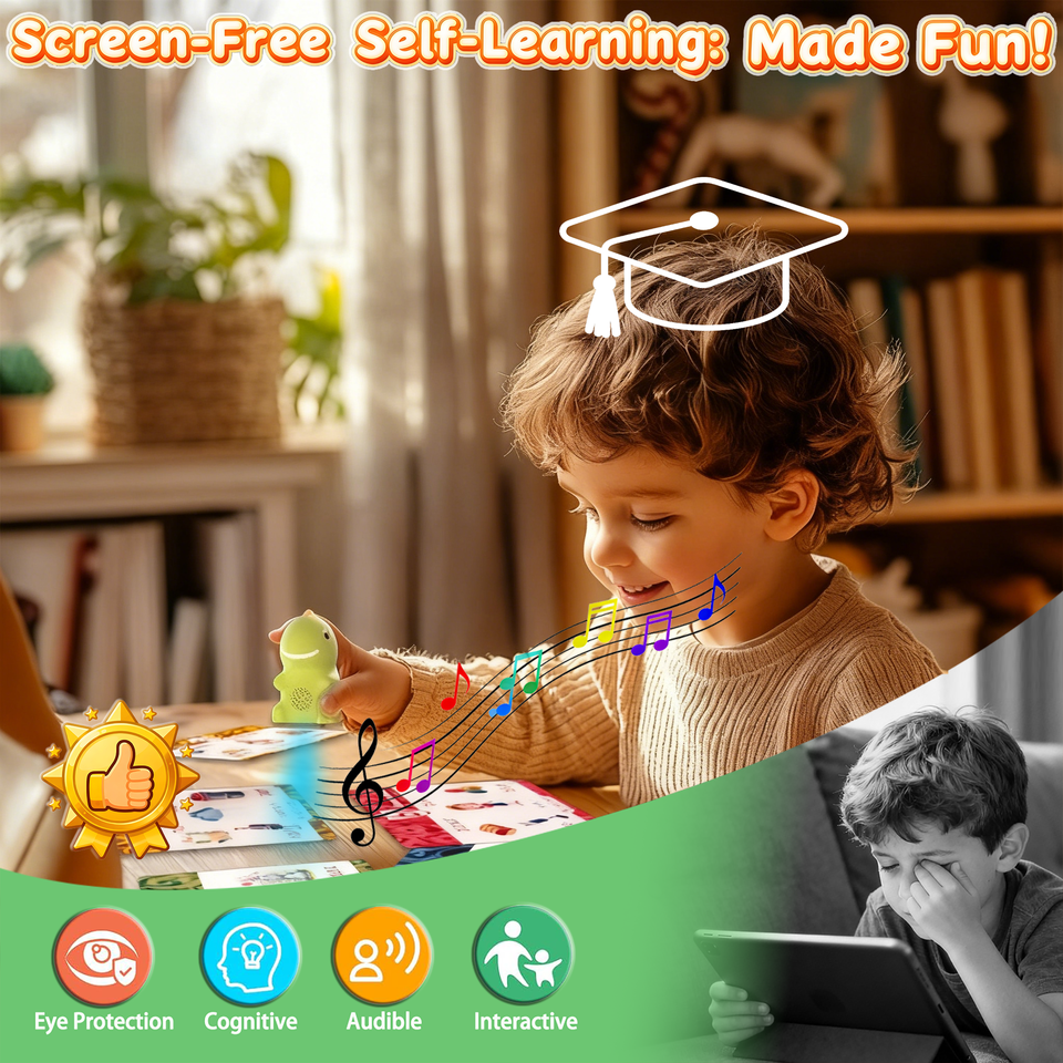 แฟลชการ์ดฝึกการออกเสียงพร้อมปากกาพูดได้ - แบตเตอรี่ลิเธียมพลาสติก สำหรับการเรียนที่บ้านสำหรับเด็กอายุ 2-7 ปี เกมไดโนเสาร์ 21 ขั้นตอน เรียนรู้การอ่าน
