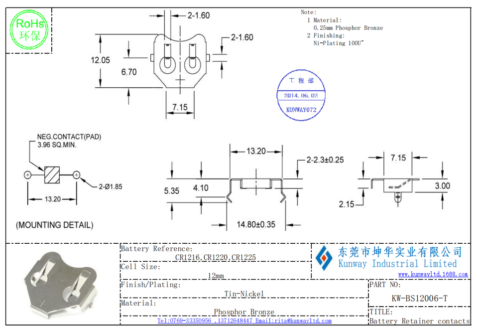 วัสดุของการติดต่อ:ฟอสเฟอร์บรอนซ์
