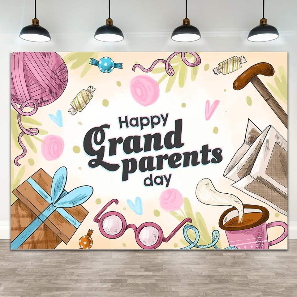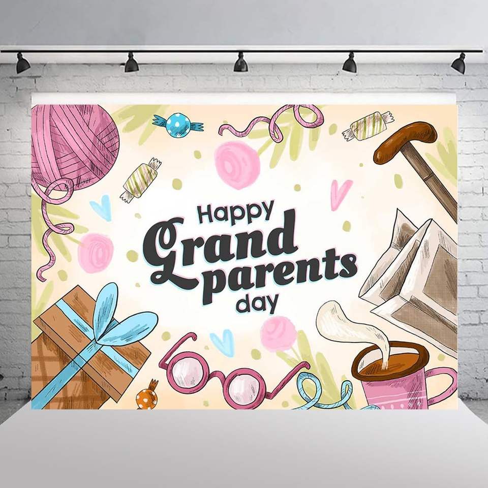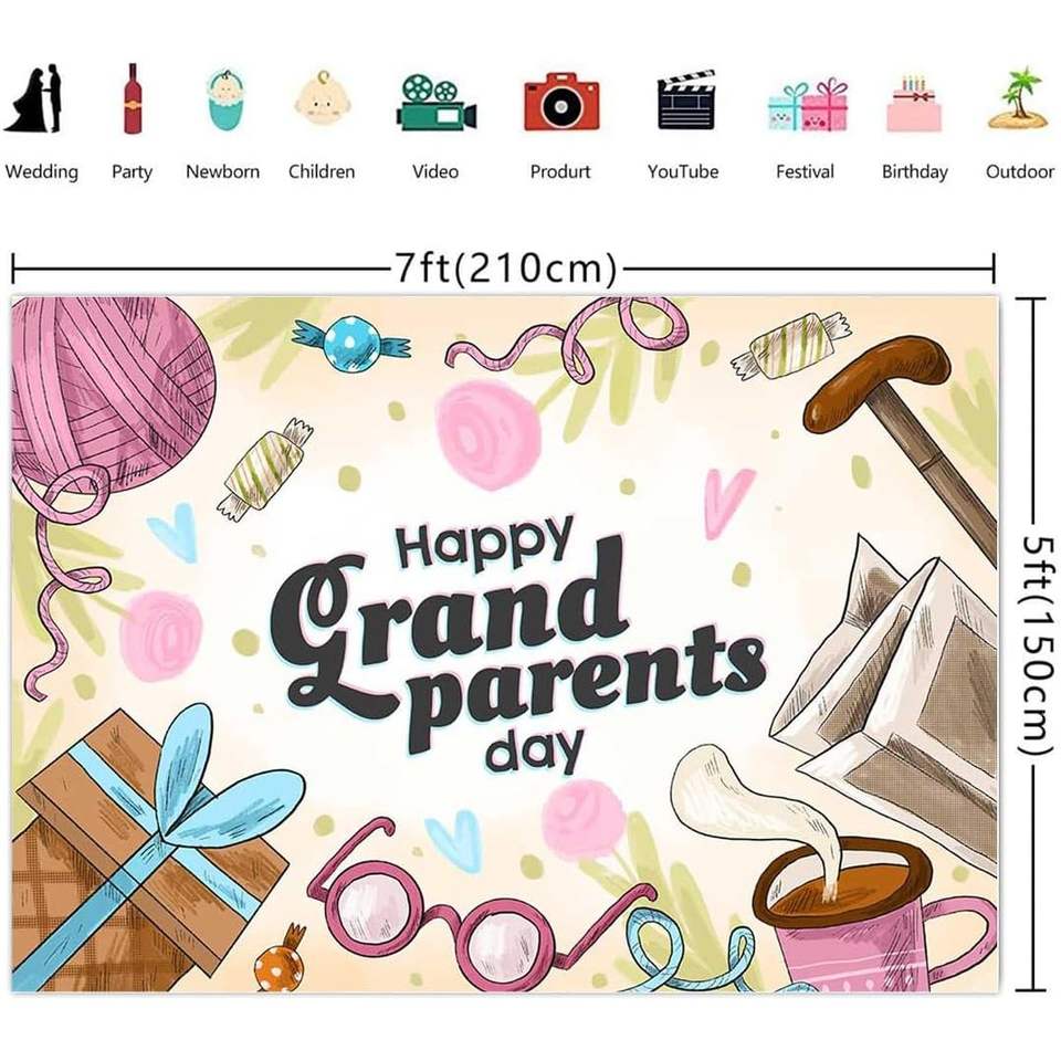 บูธถ่ายภาพสุขสันต์วันปู่ย่าตายายของตกแต่งฉากหลังของ7x5ft ของขวัญสำหรับกิจกรรมเกษียณของคุณปู่คุณย่าอุปกรณ์ประกอบฉากถ่ายรูป