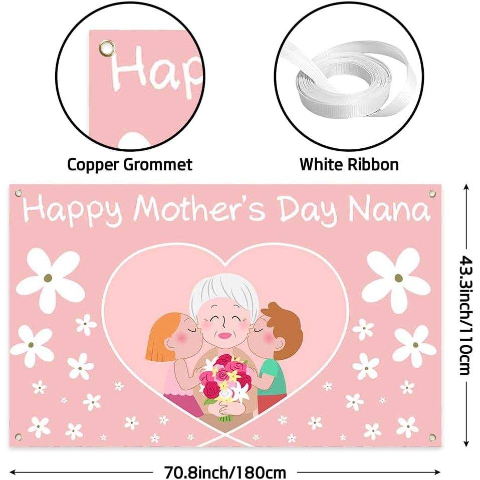 บูธถ่ายรูปแฮปปี้ลายดอกไม้นานาฉันรักคุณคุณยายบูธถ่ายรูปป้ายงานปาร์ตี้สีชมพูขนาด70.8X43.3นิ้วสำหรับตกแต่งวันแม่