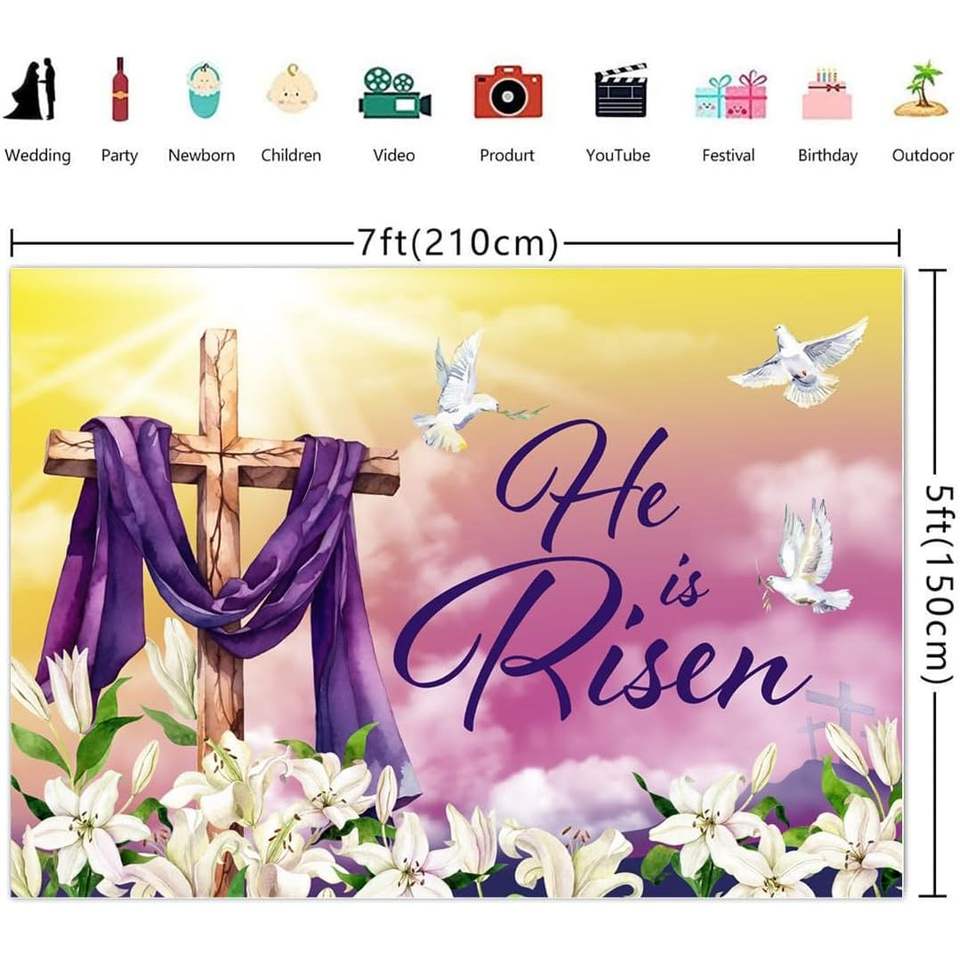 บูธถ่ายรูปเขากำลังเพิ่มสูง7x5ft แบนเนอร์อีสเตอร์สำหรับงานปาร์ตี้รูปไข่คืนพระชนม์ในร่มกลางแจ้ง