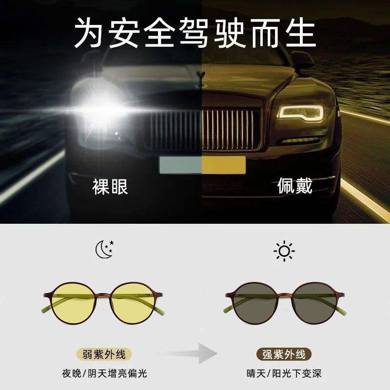 แว่นกันแดดเปลี่ยนสีอัตโนมัติ กรอบเต็ม วัสดุ PC สำหรับทุกเพศ ป้องกันรังสียูวี 400 ป้องกันแสงสีฟ้า ใช้ได้ทั้งกลางวันและกลางคืน ทรงกลม