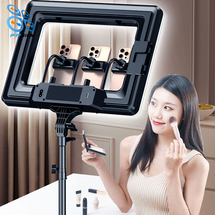 กล้องมือถือแสงนุ่ม18นิ้ว, ไฟวงแหวนสี่เหลี่ยมหน้าจอยักษ์, Three-phone stand rectangular light
