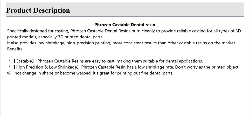 เรซิ่นสำหรับงานทันตกรรม Phrozen Castable สำหรับเครื่องพิมพ์ 3 มิติแบบ LCD 500 กรัม เรซิ่น UV สำหรับหล่อแบบจำลองทางทันตกรรม เรซิ่นสำหรับการพิมพ์ 3 มิติ