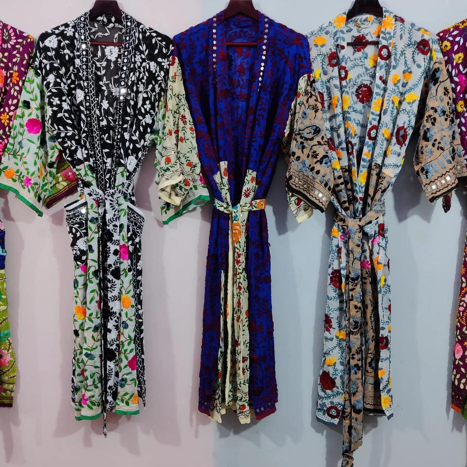 เสื้อคลุมกิโมโนปักลาย Phulkari เสื้อแจ็คเก็ตแฟชั่นโบฮีเมียนปักลายด้วยด้ายหลากสี