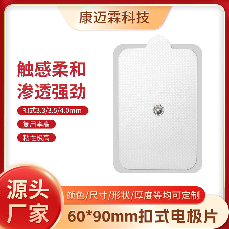 แผ่นอิเล็กโทรดกายภาพบำบัด 60x90 มม. แบบติดกระดุม ไฮโดรเจลแบบไม่ทอ แผ่นแปะกล้ามเนื้อหน้าอกแบบยึดติดด้วยตัวเอง