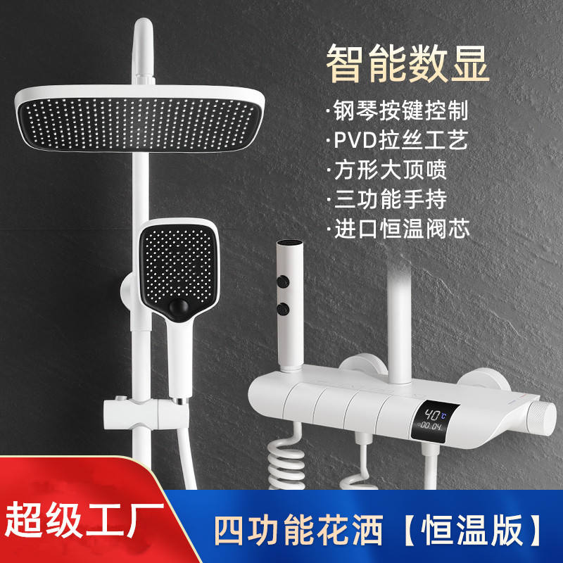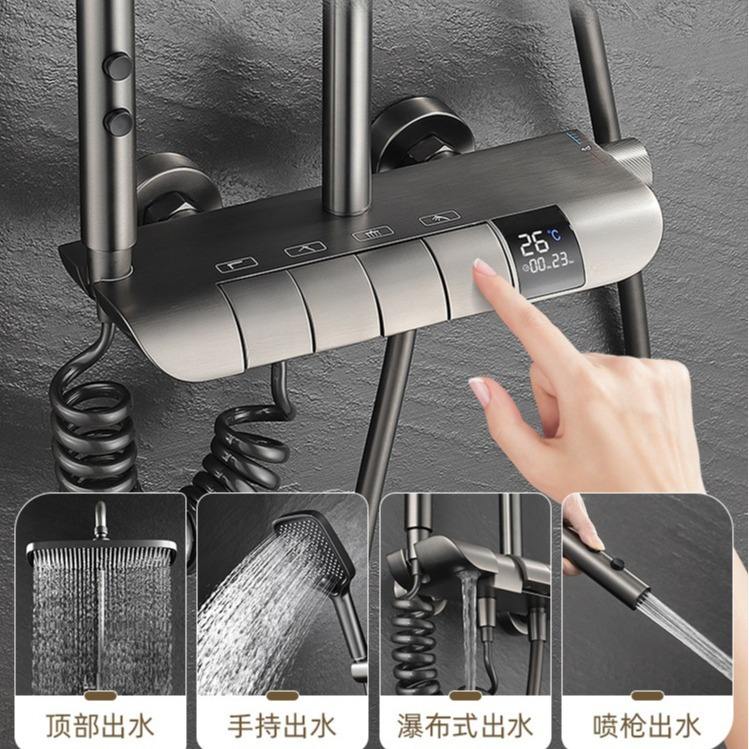 ชุดฝักบัวดิจิตอลแบบเทอร์โมสตัท ปุ่มกดแบบคีย์เปียโน พร้อมหัวฝักบัวแบบเรนชาวเวอร์ วาล์วเซรามิก ผิวสัมผัสแบบขัดเงา