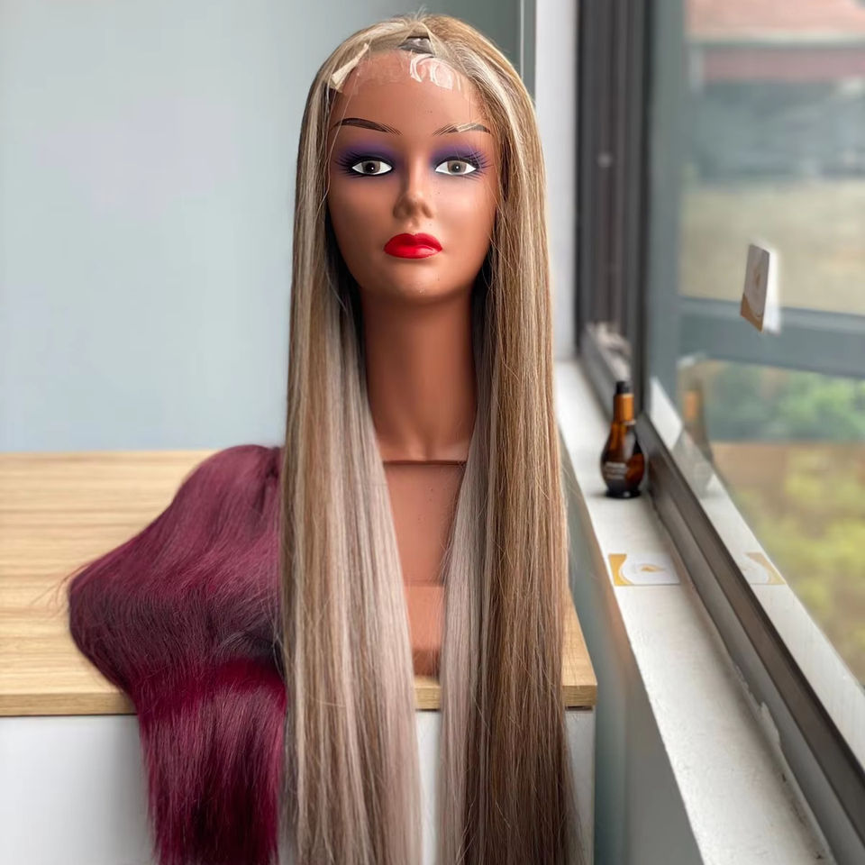 วิกผมมนุษย์วิกผมเปียโนติดหนังกำพร้าแบบ HD ประดับลูกไม้ด้านหน้าด้วยกระดูกตรงผ้าสองชั้น