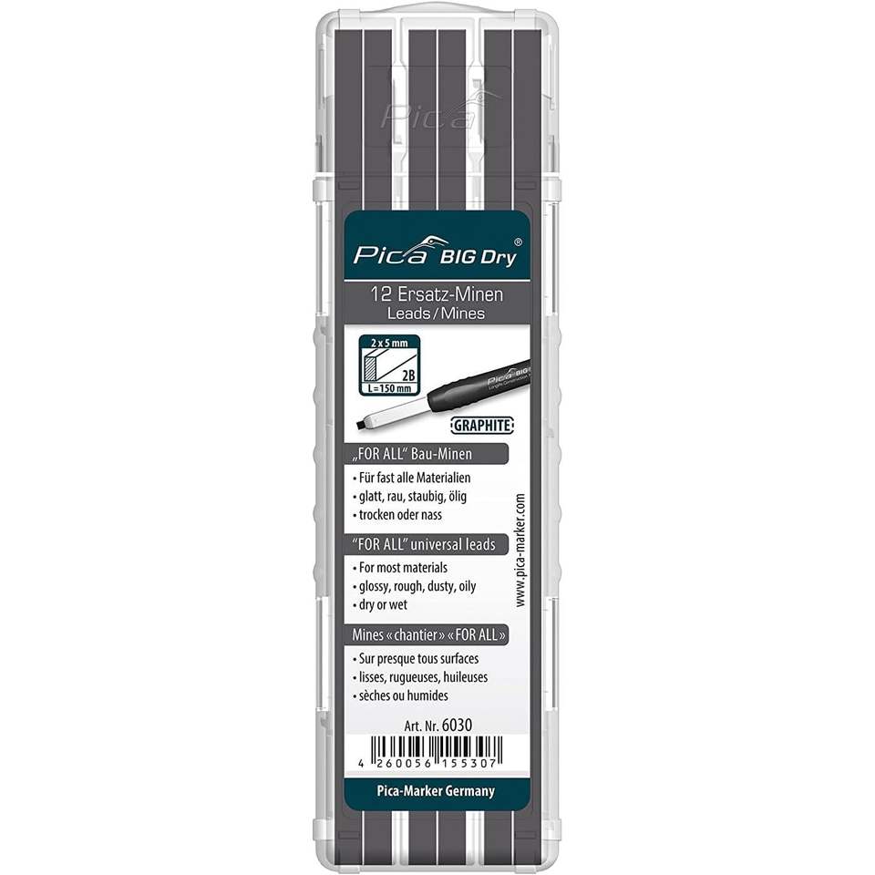 ดินสอ Pica Big Dry 12 แท่ง ขนาด 2B 2x5 มม. กราไฟต์ สำหรับทุกพื้นผิว จากเยอรมนี
