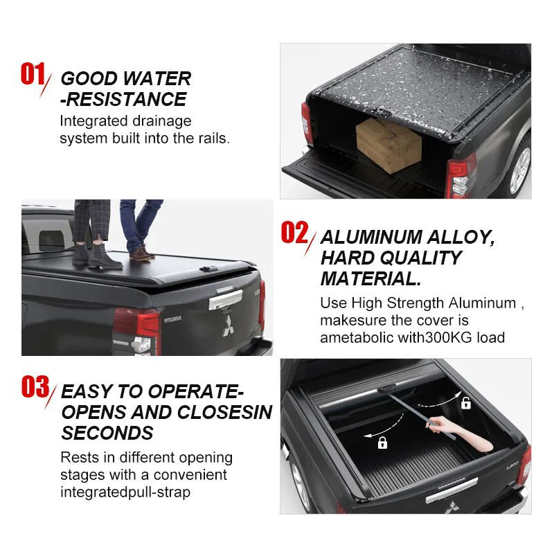 อุปกรณ์เสริมรถกระบะ ฝาปิดกระบะท้ายแบบม้วนเก็บได้ด้วยมือ สำหรับรถเชฟโรเลต จีเอ็มซี เชฟ ซิลเวอราโด ซีเออร์รา ฝาปิดกระบะท้าย