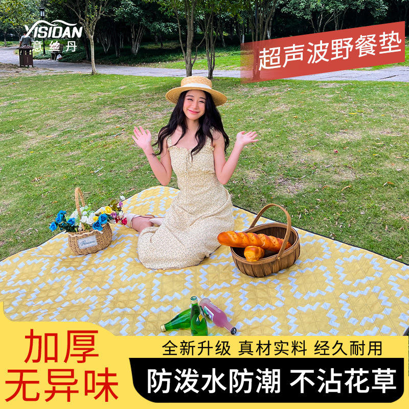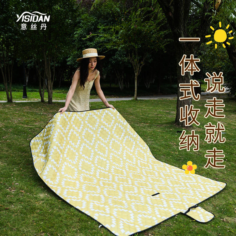 เสื่อปิกนิกเสื่อตั้งแคมป์กลางแจ้ง 200 ซม. กันลื่นกันความชื้นพับได้แบบพกพาทรงสี่เหลี่ยมผืนผ้าโพลีเอสเตอร์วัสดุพีวีซี