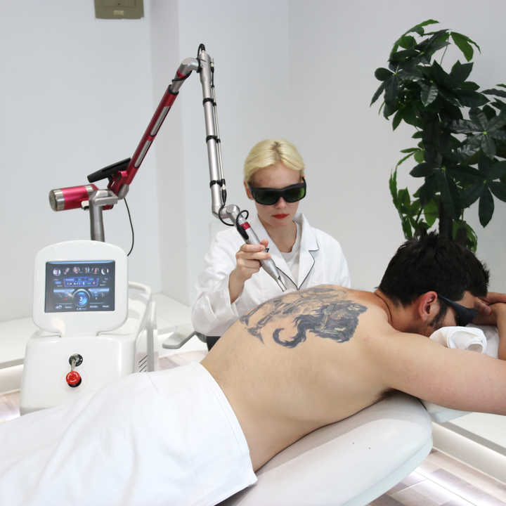 พัลส์เลเซอร์อเล็กซานดริด Picosecond nd yag การกําจัดรอยสักมือการประยุกต์ใช้เมลาสม่าสําหรับจุดด่างดําบนอุปกรณ์เสริมสวยผิวสีเข้ม