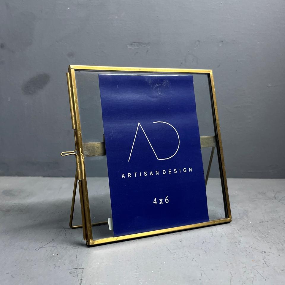 กรอบรูปตั้งโต๊ะ กรอบรูปโลหะทองเหลืองและกระจก พร้อมเคลือบทองเหลือง