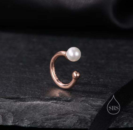ต่างหูแบบไม่เจาะหูแบบเงินสเตอร์ลิงแบบไม่ต้องเจาะหูสีทองหรือสีโรสโกลด์เรียบง่ายและมินิมอล