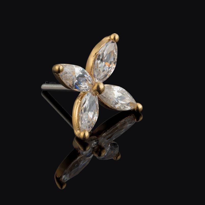 เจาะเรื่องราว14K ทองแข็งสี่กลีบ labret TOP ต่างหูต่างหูเจาะ daith tragus เครื่องประดับเจาะร่างกาย