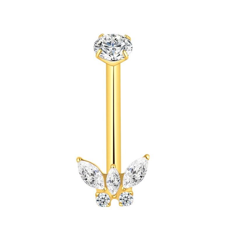 เจาะเรื่องราว ASTM F136ไทเทเนียมสี่เหลี่ยมคางหมูสะดือแหวนเจาะร่างกายเครื่องประดับแหวนกระดิ่ง