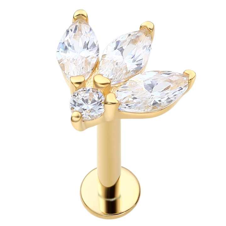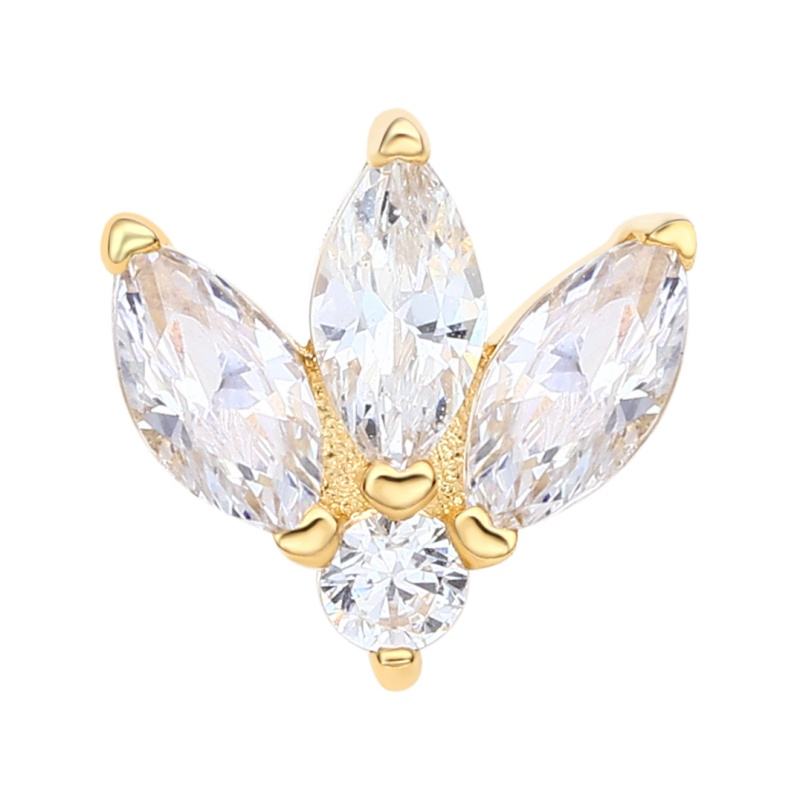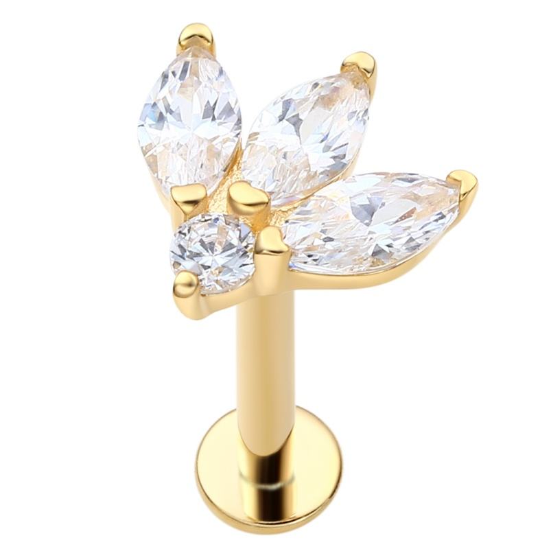 หมุดเจาะเกลียวสีทองแบบคลาสสิก14K สลักเกลียวภายในพร้อมเครื่องประดับเจาะเกลียวเหล็ก CZ ใส
