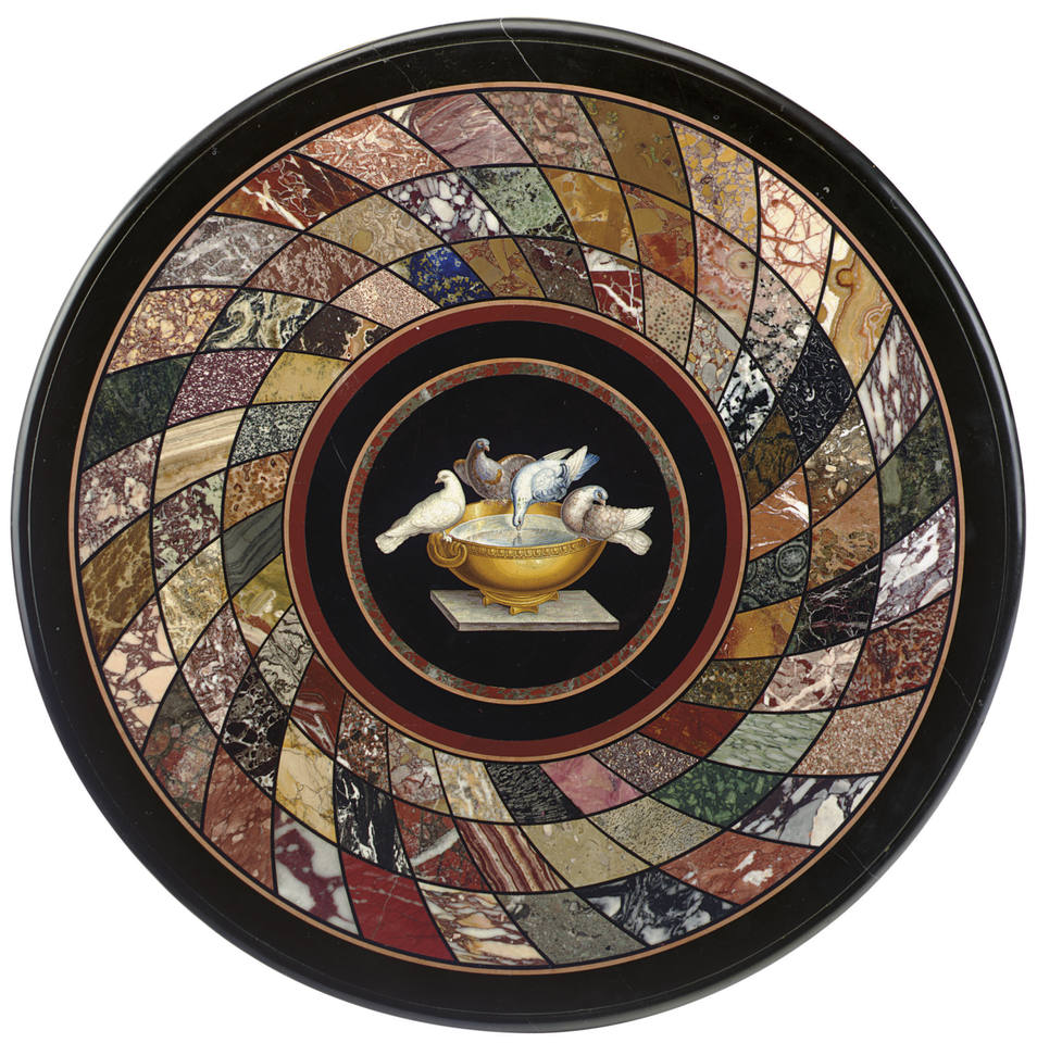 โต๊ะกาแฟหินอ่อนฝังลาย Pietra Dura สไตล์ดั้งเดิม เฟอร์นิเจอร์ห้องนั่งเล่น ผลงานหินอ่อนที่ทนทานสำหรับใช้ในบ้าน
