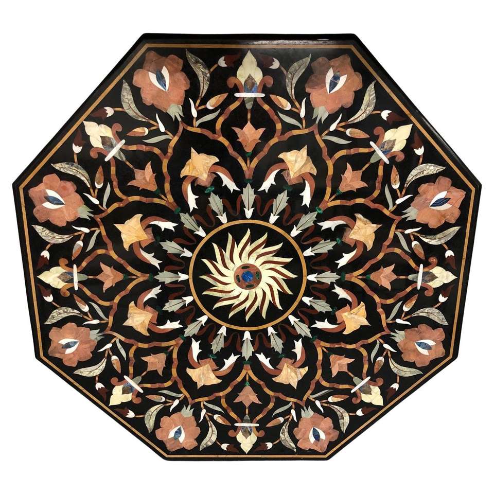 โต๊ะรับประทานอาหารหินอ่อน pietra Dura ด้านบนหินอัญมณีฝังนกและดอกไม้หินวัสดุสำหรับเฟอร์นิเจอร์บ้าน