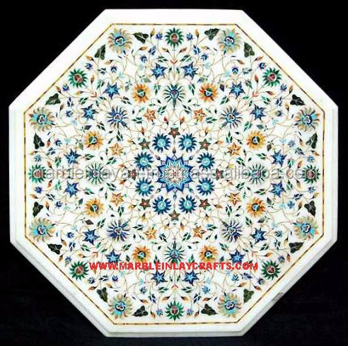 Pietra Dura Marble Inlay Table Top,โต๊ะฝังหินแฮนด์เมดสำหรับตกแต่งบ้าน