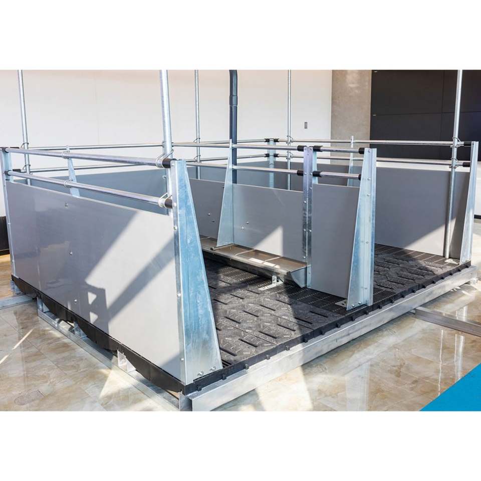 กรงเลี้ยงหมูพร้อมที่ป้อนสำหรับเรือนเพาะชำ